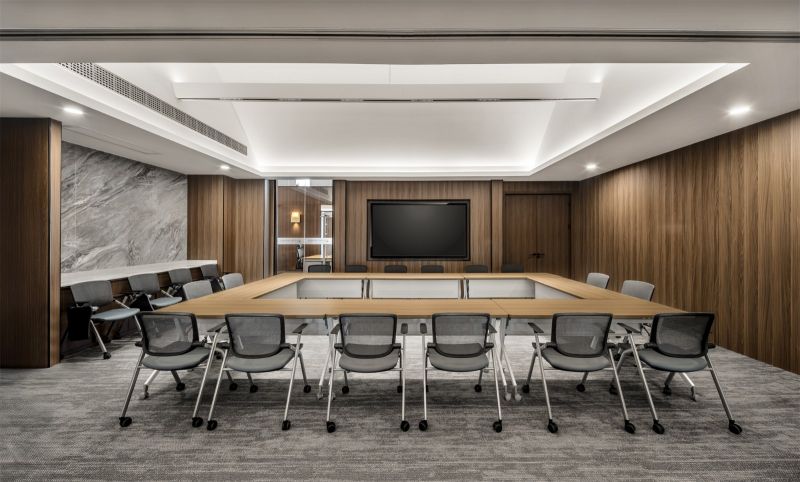 在主管办公区内,设计师以简洁的木饰面构筑沉稳的商务场景,兼顾管理决策与高校沟通的需求。