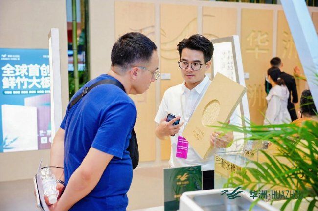 作为深耕板材领域28年的老牌企业,华洲木业此次参展精准贴合行业绿色环保、多元创新的发展导向,以“竹见新境”为核心主题,携全球首创竹馨板、金品澳桉板等七大核心系列惊艳亮相,将东方竹韵与现代家居科技完美融合,为现场观众带来了一场沉浸式的绿色家居体验。展厅设计巧妙融入原竹、竹制品、竹文化等东方元素,搭配天然鲜竹大板,让来访者在近距离感受产品质感的同时,深刻体会“以竹代木”的生态魅力,传递出品牌践行绿色低碳发展的坚定理念。