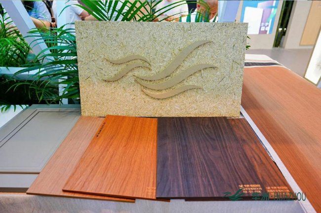 除了竹馨板,华洲木业展出的金品澳桉板、康强板等明星产品也备受青睐,进一步丰富了品牌的产品竞争力。其中,金品澳桉板以优质去皮桉木为原料,搭配MDI无醛胶,凭借突出的抗变形能力斩获行业金奖,解决了行业高定门板易变形的痛点,被众多头部定制品牌认可;康强板作为全球首张无醛添加刨花板,兼顾环保性能与结构强度,可满足多场景定制需求,现场赢得了来访者的一致好评。这些产品的亮眼表现,不仅展现了华洲木业在研发创新上的深厚积淀,也彰显了其在无醛环保、功能升级领域的行业领先地位。