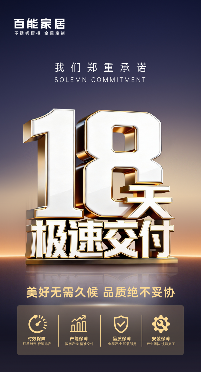 对消费者而言,这意味着什么?意味着无需在品质与效率之间艰难权衡,意味着装修计划可以精准推进而不必预留“等待期”,意味着“新家梦”不再因定制产品而迟迟无法落地。18天极速生产交付的能力,是智能制造的硬核支撑,更是对用户时间的郑重尊重。良好的交付体验,为百能不锈钢橱柜全国销量领先奠定了坚实的信任基石。