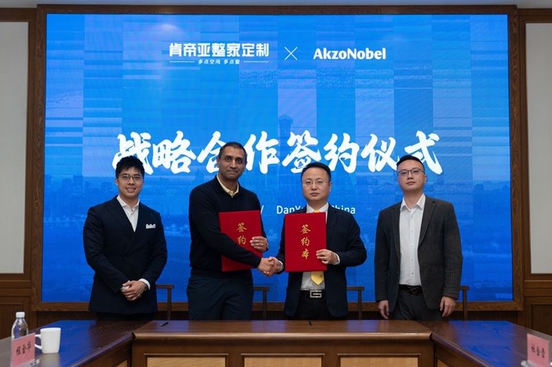 2026年3月19日,深耕地材与家居行业20载的肯帝亚集团旗下整家定制板块,与全球涂料行业巨头阿克苏诺贝尔正式签署战略合作协议。双方将在木器涂料领域展开全维度深度合作,未来肯帝亚整家定制旗下的全线木作产品将全面应用阿克苏诺贝尔定制化高品质漆面。此次签约,恰逢阿克苏诺贝尔团队到访肯帝亚集团参观交流之际,既是肯帝亚整家定制版块链接国际顶尖供应链的重要举措,更是双方基于品质与环保理念的高度契合,旨在为消费者打造高标准、高环保、高质感的高端家居生活体验。