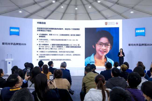在2026年上海国际眼镜展上,蔡司小瞳堡镜片的多中心临床试验中期6个月数据结果首次对外公开2: