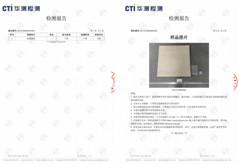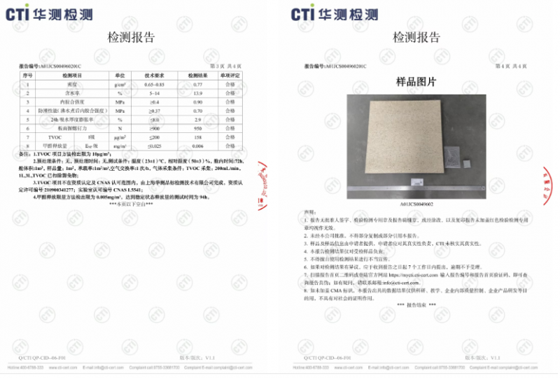 ENF级标准,TVOC符合Ⅰ级标准
