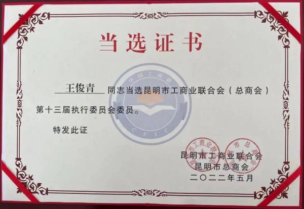 2022年5月13日至15日,昆明市工商业联合会(总商会)第十三次代表大会胜利召开。省委常委、市委书记刘洪建向大会的召开表示热烈祝贺并作批示,省委统战部副部长、省工商联党组书记、常务副主席赵明辉到会指导。市委常委、市委统战部部长、市委社会工委书记周红斌出席会议并讲话。 云南瑝玛木门有限公司总经理王俊青出席了会议。 左1:云南瑝玛木门有限公司总经理王俊青,右1:昆明市工商联(总商会)主席(会长)董林。 会议审议通过了昆明市工商业联合会(总商会)主席董林代表第十二届执委会所做的工作报告,安排部署了未来五年的工作任务。 大会选举产生了昆明市工商联(总商会)第十三届执行委员会领导机构和领导班子。董林当选昆明市工商业联合会(总商会)第十三届执行委员会主席、总商会会长,昆明市智能·家居行业协会会长当选昆明市工商业联合会(总商会)第十三届执委。 云南瑝玛木门有限公司总经理王俊青当选昆明市工商业联合会(总商会)执委 会议听取并审议董林代表昆明市工商业联合会(总商会)第十二届执行委员会所作的工作报告,过去的五年,是凝心聚力砥砺奋进的五年,是服务品质全面提升的五年,是队伍建设快速发展的五年,是机关作风更加优良的五年,是社会影响显著增强的五年。开展“春融同心·招商引资(引智)昆明行”进县区、进商会、进埠外活动31站,促成项目签约40个,80家商会与昆明市招商委签订委托招商协议,投资额400余亿元。增强区域经济社会发展聚合效应,滇中5城签订《滇中城市经济圈工商联(总商会)经贸交流框架协议》,建立了产业发展、招商引资、经贸交流、联合服务、信息交换互通、课题调研协作等合作机制。 五年来,组织参加进博会、南博会、农博会以及台商云南行昆明圆桌会、“一带一路”工商合作“云聚会”、尼泊尔博克拉工商交流会、缅甸投资推介会、“云品出海走向迪拜”云洽会等经贸合作、投资洽谈活动3场,参加会员企业和商会4000余家。 会议号召,全市工商联广大会员要紧紧围绕当好全省经济社会发展排头兵、打好经济工作翻身仗这一艰巨任务,锐意进取,砥砺奋进,为加快中国春城、历史文化名城、国际大健康名城、区域性国际中心城市建设,奋力开创生态化国际化现代化发展新局面贡献智慧和力量,以优异成绩迎接党的二十大胜利召开! 昆明市工商联(总商会)第十三届执行委员会全体合影留念。![]()