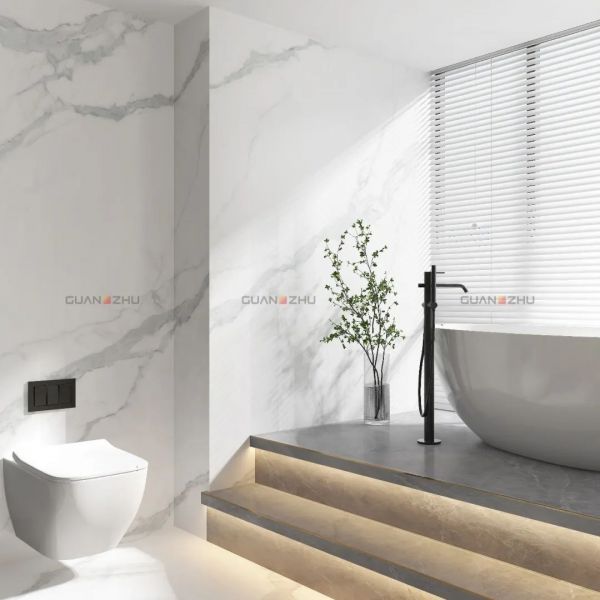铺设卫浴间墙地更是将雪山的洁净高雅融入生活每一细节,耐刮磨、抗脏污、易清洁的性能,也为卫浴间的整洁耐用提供了支持。