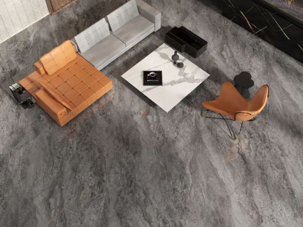 奥维尔·深灰铺贴地面,自带大自然的沉稳和潇洒,岩板光滑质感与木质细腻视感搭配,组合出有格调的自然感艺术。