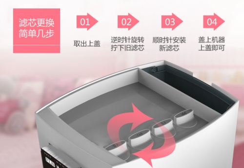 这款一体式净饮机不仅仅安装方便,更换滤芯也十分简单,采用新一代旋转式滤芯,DIY自助换芯,仅需3秒钟就换好了,方便又快捷!超静音设计,工作时分贝仅同闹钟滴答声,对生活没有影响,即使是家中有小宝宝也无需担心会吵到小宝宝休息!