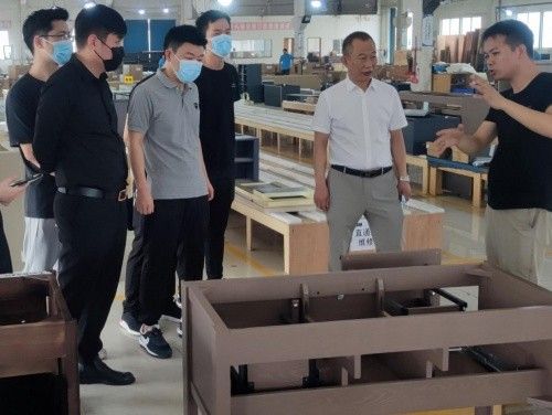 游学第一站,西安设计师团队一行首先参观了LORBN劳宾•高明生产基地。高明生产基地是集“绿色、智能、精益”为一体的现代化智能工厂,拥有行业先进的生产设备、绿色的自动化生产线和严格的质量检测标准。设计团队在LORBN董事长李睿等领导人员的带领下,近距离感受了浴室柜的生产原理及工艺设备。