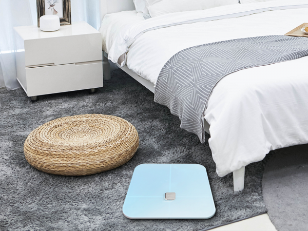 除了颜值出众,UOIN智能体脂秤采用AG磨砂玻璃,如同苹果Pro max背板玻璃的触感。不仅亲肤细腻,而且防滑。当我们运动后,或者洗完澡后,脚底有轻水弱汗的时候,磨砂的工艺可以起到防滑的作用,自带阻力,使用的时候更加安全放心。