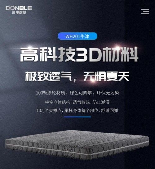 东宝床垫“牛津”就是一款夏天的“消暑神器”。它表面采用3D透气网面,具有十万数量级的透气网孔,床垫内部的热气能够通过这些透气网孔排出。
