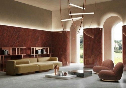 马可波罗岩板【锈钢格岩】以锈化艺术为灵感,搭配当代流行的几何格纹,时尚气息与高级质感扑面而来,构建出当代都会生活的高雅质感。
