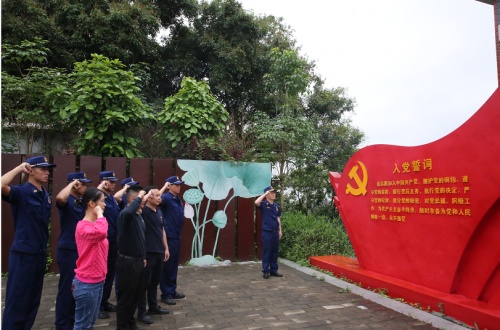 参观开始前,全体党员在大队党委书记、教导员卢海的带领下,神情肃穆、举起右拳,整齐地面向党旗庄严宣誓,重温入党誓词。铿锵誓言在园区回荡强烈震撼着每一位党员的心,让现场所有党员更加坚定牢记自己的庄严承诺,在工作中以人民利益为重,永守入党初心,时刻以党员的标准严格要求自己、时刻以党员的先进性鞭策激励自己。