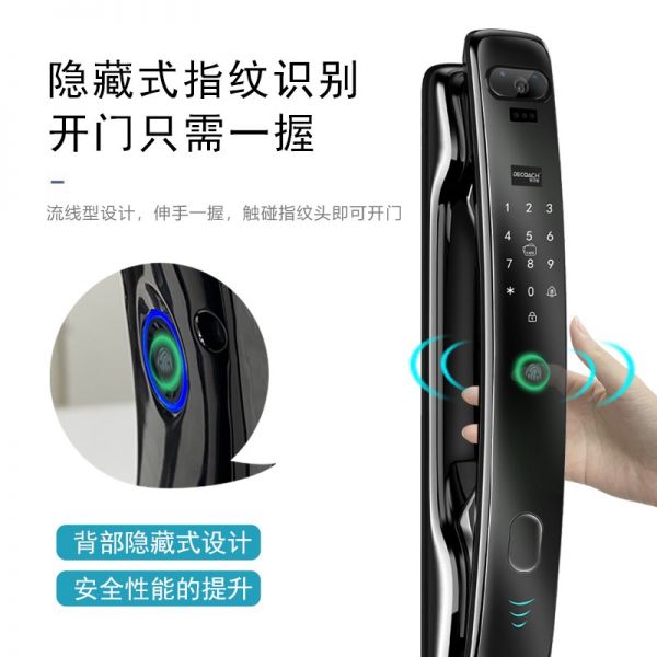 德铠曼智能锁的3D人脸识别技术可适应无光、变化表情、妆容造型等多种实际使用环境,无论男女老少都方便,让整个开门过程更便捷,也更安全。在解锁过程中,不需要用户特地按压门把手,识别脸部即可自动解锁。在双手都被占用时,完成人脸识别后,身体轻靠上去即可将门打开,真正做到解放双手。
