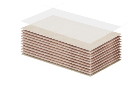 合平板作为家具制作用板材,工艺标准更为严苛,在板芯的材质和厚度选择上要求更高,澳思柏恩选择桉树作为原料,板芯100%是同一木种,因此板材的强度、握螺钉力及抗弯性能都更强,可满足全屋定制家具及超高门板的制作,同时区别于目前市面上同等同类型产品为5层或7层产品,合平板采用9层及以上芯材结构,稳定性显著提升!