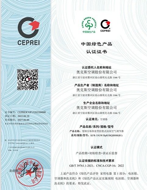 作为一家28年来专注于空调赛道的家电企业,奥克斯空调坚持以高质量、可持续发展为主要目标,以绿色低碳为主要行动路径,致力于持续推进行业创新升级、不断满足消费需求、带动上下游企业践行绿色发展,与行业共同进步。此次它成为首批“中国绿色产品认证”家电企业暨空调企业之一,表明其产品在设计、生产、使用等全生命周期中均符合绿色发展理念,是对其绿色产品成长发展的充分肯定。