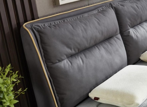 随着生活水平的不断提高,人们不再满足于家具的基础功能,开始追求外观、细节。这款东宝软床采用科技布面料,柔软亲肤,恒温保暖。床头处的金色包边设计,提升了软床的层次感,同时彰显主人的高端品味。