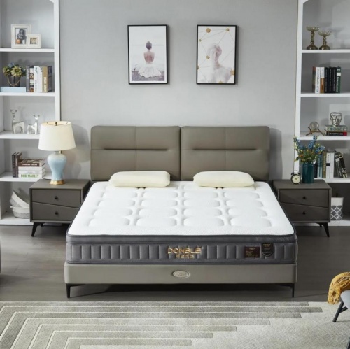 这款东宝软床虽然外观简洁,细节处却毫不含糊,床头采用真皮包裹,触感柔顺,亲和肌肤。床头靠包犹如一块“法式面包”,柔软饱满,倚靠舒适。