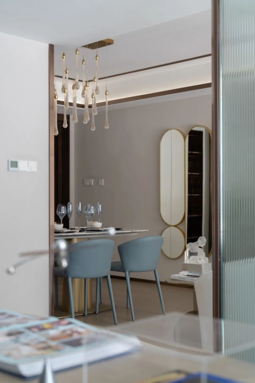 一个好的空间设计可以带给你无尽的情绪想象。一体化的客餐厅设计视野通透,空间秩序流畅,仿若置身海边放松悠闲的氛围,有清风拂面、心旷神怡之感。