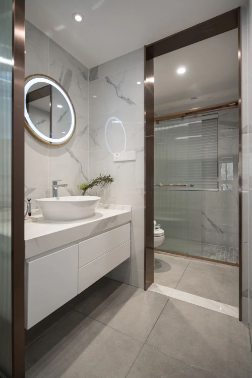 卫生间干湿分离、洗手台外移设计,大大提升卫浴空间的实用性,将空间利用到极致。