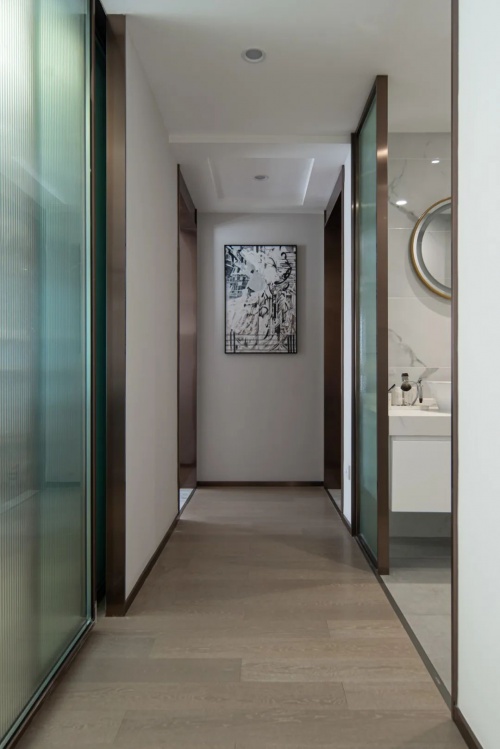 绿色的玻璃推拉门隔而不断,巧妙地增加了空间的通透感和清爽气息,如碧波荡漾,生机盎然。