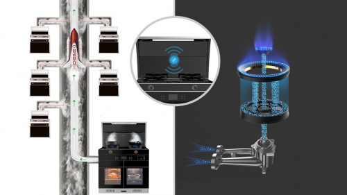 除了上面说的“均衡”新功能,德意蒸烤均衡集成灶也完美地“继承”了德意三????集成灶“大风压/大火力/大空间”的优秀基因。900Pa大风压搭配大吸力,强排油烟不倒灌;5.2kW大火力,创新POWER大火力燃烧系统成就大厨级中式爆炒。而智能烟灶联动功能将二者默契衔接,灶具点火时,烟机即刻启动,灶具关闭时,烟机再运行三分钟排尽余烟后自动关闭。