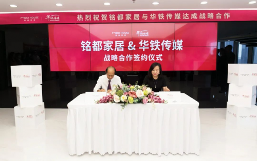 2022年7月6日,铭都家居与华铁传媒战略合作签约仪式在北京隆重举行。此次强强联合,是双方在精诚合作、互利共赢的基础上,助推品牌全国化布局迈出的坚实一步。铭都家居正式形成“中国品牌+中国名片”的品牌传播矩阵,以中国速度助力铭都家居加速实现品牌知名度跃升!