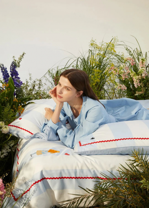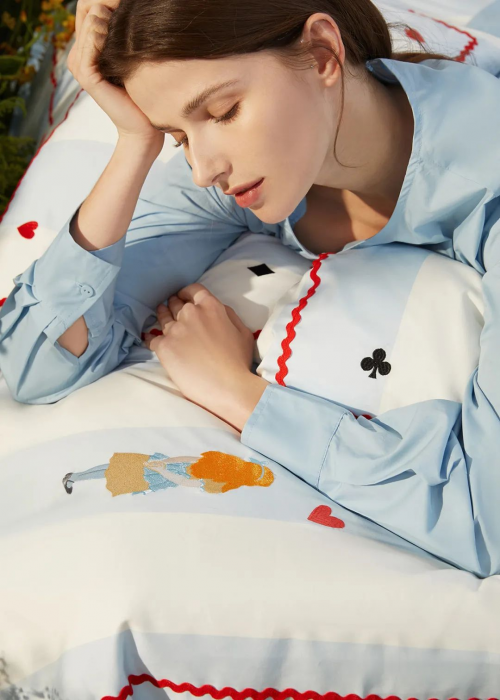 今年,铭都家居携手V&A博物馆跨界合作,结合《爱丽丝漫游奇境》的绘画故事,以最具代表性的“爱丽丝与柴郡猫”和标志性蓝白色系与床品相融合,为这个夏季带来奇思妙想的快乐与无限可能。