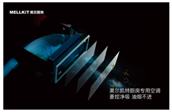 美尔凯特厨房专用空调专为厨房高油烟环境设计,5级全方位防护油烟。