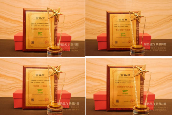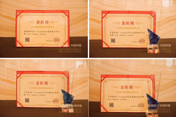 现场,千年舟凭借创新品质实力、强大品牌影响力获行业认可,荣获“2022行业影响力十大品牌”“2021环保板材十大品牌”“2021行业影响力板材十大品牌”“2021、2022匠心板材十大品牌”“2021、2022生态板十大品牌”,集团旗下澳思柏恩亦喜提“2022家具板十大品牌”荣誉。