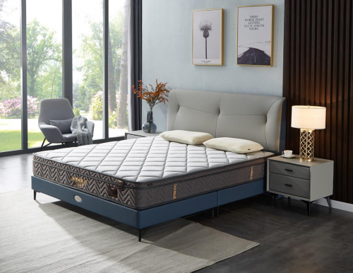 然后按顺序把各种填充材料、绗缝面料、弹簧床网排列组合,用物理方式缝制固定。