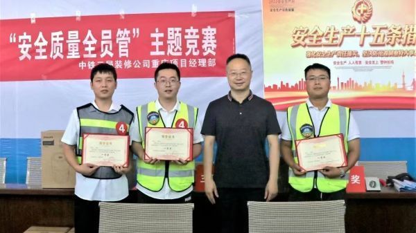 为进一步落实全员安全生产责任制,帮助干部职工增强安全意识,牢记岗位职责,提高事故隐患排查、分析及应急处置能力,近日,中铁二局装修公司重庆项目经理部组织开展了“建功十四五、奋进新征程”之“安全质量全员管”主题安全竞赛活动。公司党委副书记、纪委书记、工会主席杨成静,安全总监郑宗跃出席活动。