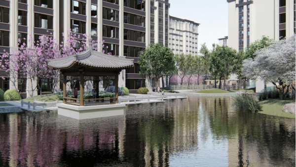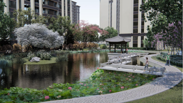 交控置地·龙锦院项目由清华大学建筑设计院主笔,汲取中式书院美学之精髓,以百年清华园为蓝本,形成一轴一环两区、七院十七景的景观格局。以状元桥、梦笔生花、鲤鱼跃龙门、业主书院、篮球场及约2800平方米宽阔湖景等景观。学府书院式园林,次第花开四季恒美,复现书院人文大境,院藏臻景。