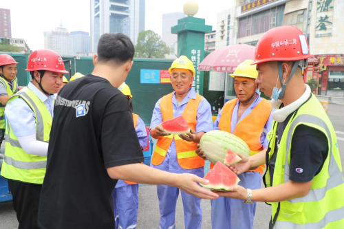 酷暑天气,中铁二局六公司成都轨道交通13号线小南街站正施工正酣。“每天能够吃上项目‘清凉小车’送过来的西瓜,喝上藿香正气液、绿豆汤、王老吉,真幸福!”结构队伍钢筋工老许在施工作业的间隔休息时吃着西瓜,开心地咧开嘴笑了。如今,随着“送清凉服务队”频繁深入工地一线,“清凉小车”已经成为项目部各个工点作业人员翘首以盼的“心头好”。