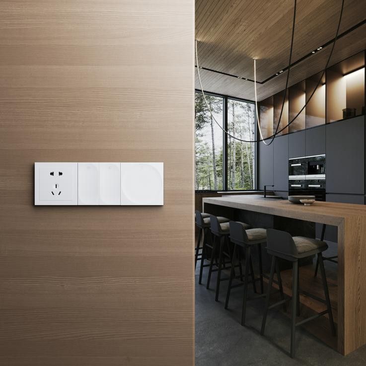 区别于市场同类产品,添智系列将超薄内圆凹陷的时尚外观和多种技术突破相结合。外形设计采用天圆地方,大气简约,多种颜色可选,满足个性化需求。全平面、无盲点轻触按键开关,手感舒适。三峰照明添智系列将视觉与触觉的完美交融,一屏在手,全屋随心掌控。