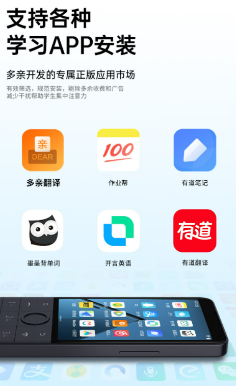 与此同时,多亲 F22 Pro 还内置了一个干净无广告的正版 APP 商店,为孩子提供了足够丰富的学习 APP,保证孩子学习时的优秀体验。