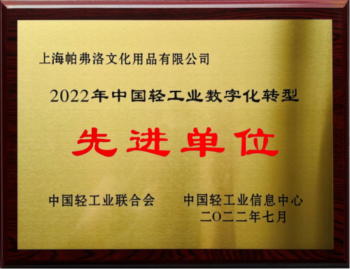 近日,“数智领航·创新转型”第十二届中国轻工业信息化大会在杭州隆重举办。海尔集团、五粮液集团、华为科技、伊利集团、上海帕弗洛文化用品有限公司(以下简称帕弗洛公司)等作为轻工行业数字化转型优秀代表受邀参会并荣获表彰,被评为“2022年中国轻工业数字化转型先进单位”。