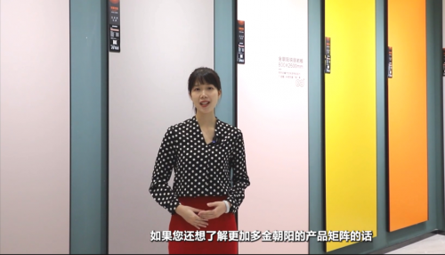 产品是第一营销力。为了让直播间的观众更直观地感受金朝阳产品魅力,由金朝阳小程子带领大家进行沉浸式云逛展厅,详细讲解了750*1500mm春韵系列、岩板900*1800mm系列以及纯色岩板800*2600mm锐丽系列等产品,让大家更详细、深刻地了解金朝阳产品设计理念及品质。