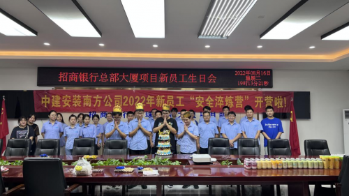 用真情关爱职工,帮助青年员工融入企业。8月16日,中建安装南方公司招商银行总部大厦项目组织开展新员工生日会,共同为当月过生日的4位员工举办生日会。在项目精心组织下,项目副总工黄应广、项目工会主席朱嘉诚和项目部员工们为寿星们送上生日祝福。