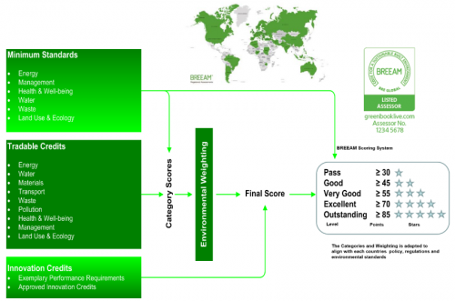 由英国建筑研究院(BRE)开发的BREEAM绿色认证,评估体系采取“因地制宜、平衡效益”的核心理念,使它成为兼具“国际化”和“本地化”特色的绿色建筑评估体系,催生并影响其他国家和地区,发展绿色建筑评估标准。