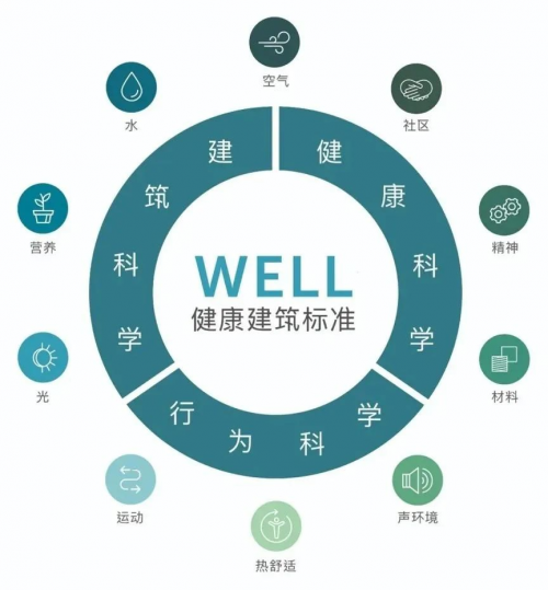 拥有持久生命力的建筑,是从人与建筑、健康与建筑的有机关系出发,持续思考并不断进化,营造宁静、温暖、节能、安全的舒适生活。作为开启健康建筑时代的WELL认证,以医学研究为准则,从十大概念——空气、水、营养、光、运动、热舒适、声环境、材料、精神、社区对建筑的健康属性进行评估,全面考察建筑环境的健康属性与对使用者的关怀,是全球首个针对室内环境提升人体健康与福祉的建筑认证标准,被誉为绿色建筑界的“奥斯卡”。