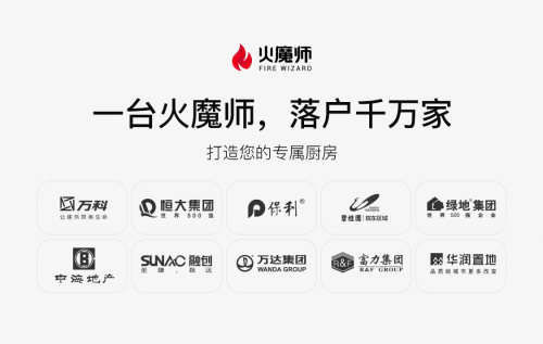 在该渠道,头部厨电品牌根基很深。典型如火魔师,基于深厚的品牌积淀,再次经受住市场考验,延续近年来的高速增长领跑行业大盘,品牌表现相当稳健。根据了解,目前火魔师已经与中国多个知名楼盘家装板块有战略合作关系,如:恒大、万科、保利、碧桂园.....