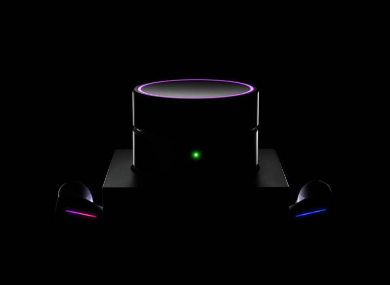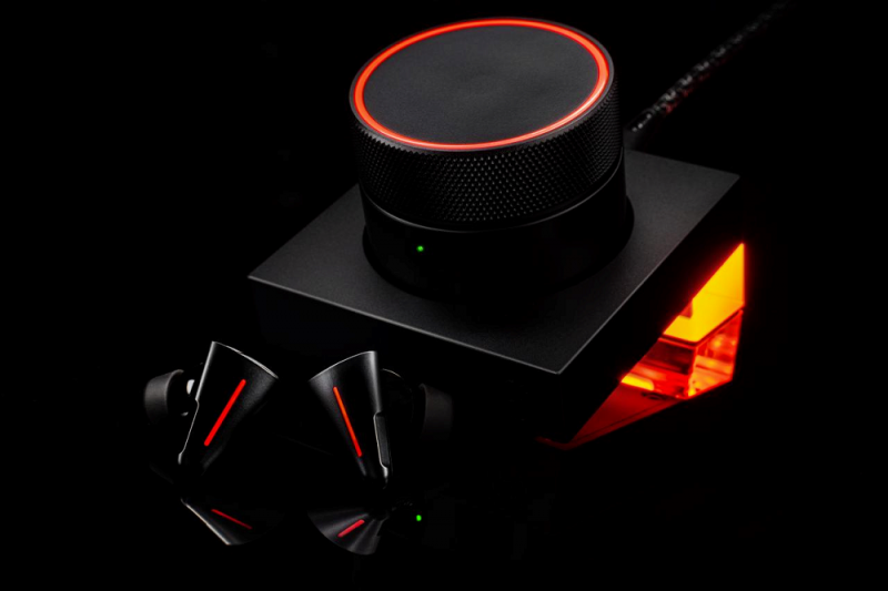 此外,CYBERBLADE 还拥有一系列非常人性化的交互设计,在有线连接的状态下,怒喵在CYBERBLADE 充电盒上的盒盖加入了旋钮与压感设计,可以非常便捷的实现音量大小调整,开闭麦,场景增强器切换等功能。同时还能在游戏主机/手机/电脑等多个设备之间无缝切换,将多设备兼容体验做到极致。