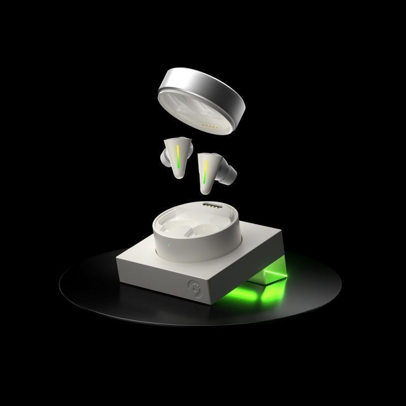 因此,如何满足对于室内使用场景至关重要的游戏/影音体验,即在实现低延迟同时不牺牲任何音质,就成为了CYBERBLADE 首要课题。而 CYBERBLADE 创新性的在耳机的充电盒中多放入了一颗计算音频芯片,从而彻底解放了电力对于算力的桎梏,完成了全球 TWS 行业中的首次算力再分配。