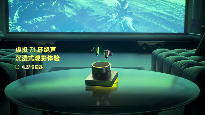 而在电影增强模式下,则可以通过算法,实现以往 TWS 耳机所无法做到的虚拟 7.1 环绕立体声模拟,使用 2.1 的音源,来模拟 7.1 环绕声效果。在一定程度上解决了 7.1 环绕立体声设备价格高昂以及相关资源匮乏的情况。无论是观影,还是游玩声效宏大的 3A 游戏大作都更加身临其境。