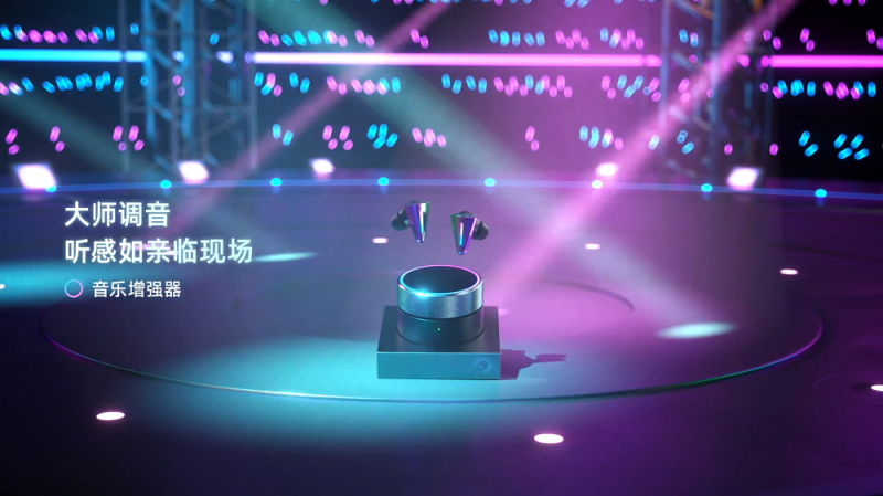 除了三芯片直接带来音质增强,怒喵还希望 CYBERBLADE 能够成为 TWS 个性化音频的先驱,在音频场景增强方向进一步发力,加入了针对游戏、影音与音乐等不同场景的多种 Booster 场景增强器算法,玩家可以根据其使用场景,通过充电盒按钮,快速将 CYBERBLADE 切换至更加合适的场景。