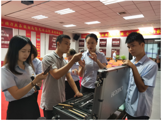 同时,CMECH希美克更针对品牌合作产品进行讲解和介绍,主要是外开纱窗一体无底座执手+科隆系列方轴执手、内开内倒六方轴配置+重型配置这两款门窗五金系列产品,并对产品在主打卖点、基础安装、销售技能等方面进行知识普及,帮助品牌员工在后期的产品推广、销售运营以及产品安装等方面提供专业的指导和帮助。