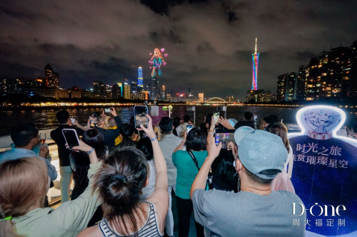 当晚,周大福定制D-ONE同时还承包了一艘游轮,在广州珠江游艇之上的最佳观赏点,仰望穹顶,欣赏这份属于彼此的感动,让粉丝真真切切感受到周大福定制D-ONE的每一次活动、每一份惊喜、每一处细节,都传递着真挚与浪漫的感动。