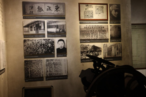 展厅内还陈列着一台老式收音机。1948年10月,中国民主同盟苏州地下支部成立,中共苏州工委通过地下党员许甫如、蒋赉与民盟成员金琪、黄肇模等取得联系,相互配合,成了同盟军。当时,为了更好地进行宣传,尽快地把解放区的声音传递过来,苏州民盟创始人之一黄肇模(化名杨筑伦)卖掉家中的红木家具筹得二两黄金。由于当时收音机还是相当稀奇的东西,为了不引起国民党特务的注意,黄肇模特别请熟悉的人买来配件,再组装了一台能收短波的收音机,秘密收听解放区电台。1949年4月27日清晨,苏州宣告解放。民盟苏州支部依靠《苏报》馆职工,印刷出版了《光明报•号外》,以"苏州新历史的第一页、人民解放军进城"的大号标题报道了苏州人民欢迎解放军进城的热烈场面,并刊出了苏州民盟支部的《告苏州同胞书》。 4月28日,《光明报》第六期(新一号)出版,刊出《告苏州教育界人士书》。两期报纸刊载的解放战争的其他胜利消息也都来自这台收音机。