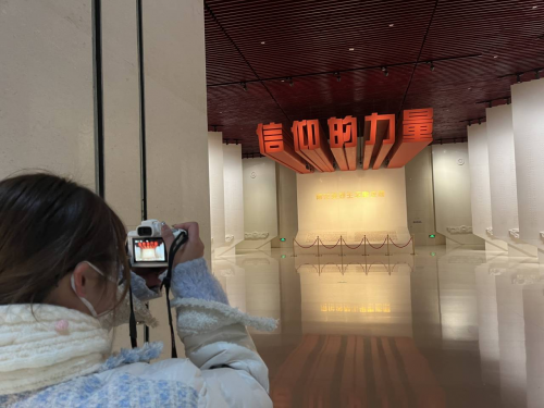 图为作者在信仰牌前深刻体悟信仰的力量,并将革命信仰烙入脑海