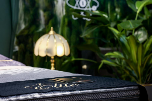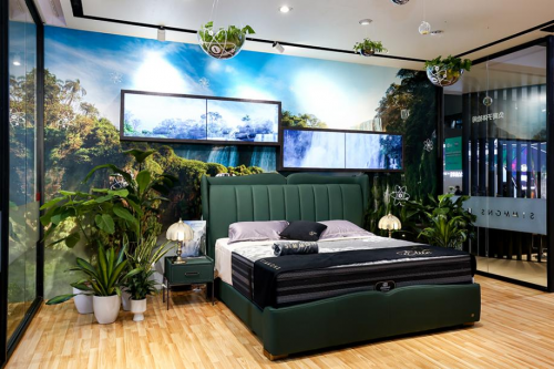 负离子空间”概念展厅内以Elite奢华系列的明星产品 ——“Radiance瑞蒂思”床垫为主打 。“e-ION CRYSTAL®负离子技术”搭配其核心科技“Beautyrest®甜梦独立袋装弹簧科技”,叠加三环钢丝交织而成的“独立袋装索缆弹簧系统”,配合“微型贴合独立袋装弹簧”的双层弹簧结构,以及专为Elite奢华系列产品挑选的特级面料等,奢华睡眠体验尽现。